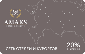 ** Скидки по карте лояльности не суммируются со скидками по картам лояльности и другими спецпредложениями курортов. Скидка по карте AMAKS Loyalty на курортах сети распространяется только на санаторно-курортные и оздоровительные путевки, забронированные на сайте www.amaks-kurort.ru.